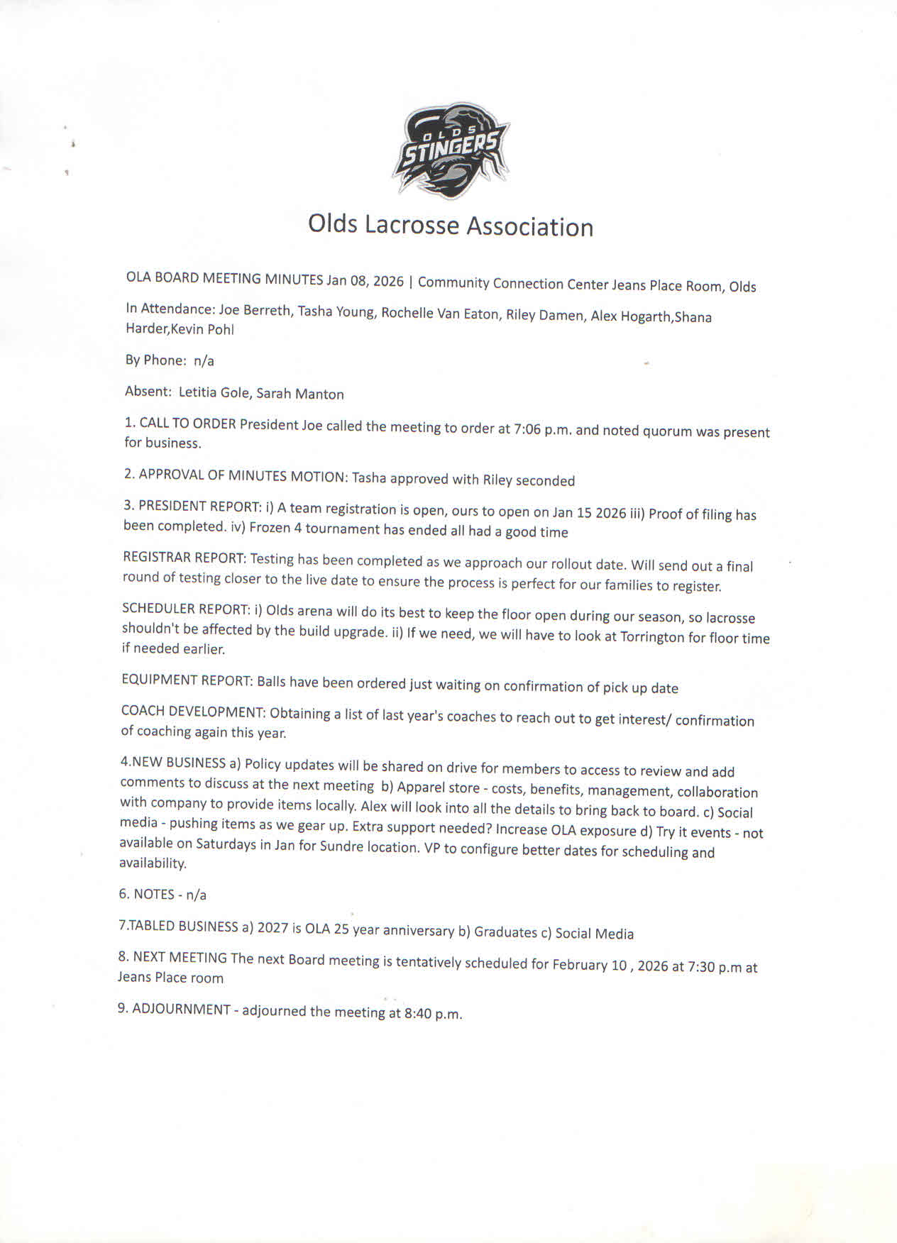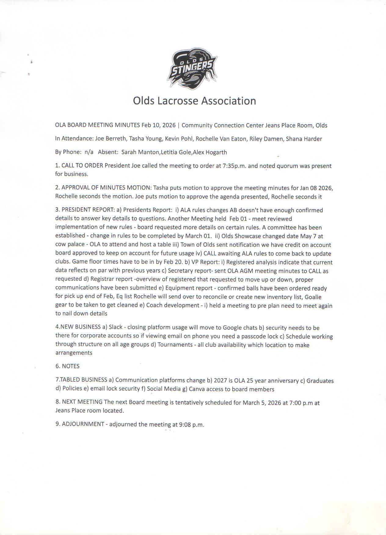 Feb 10, 2026 Minutes